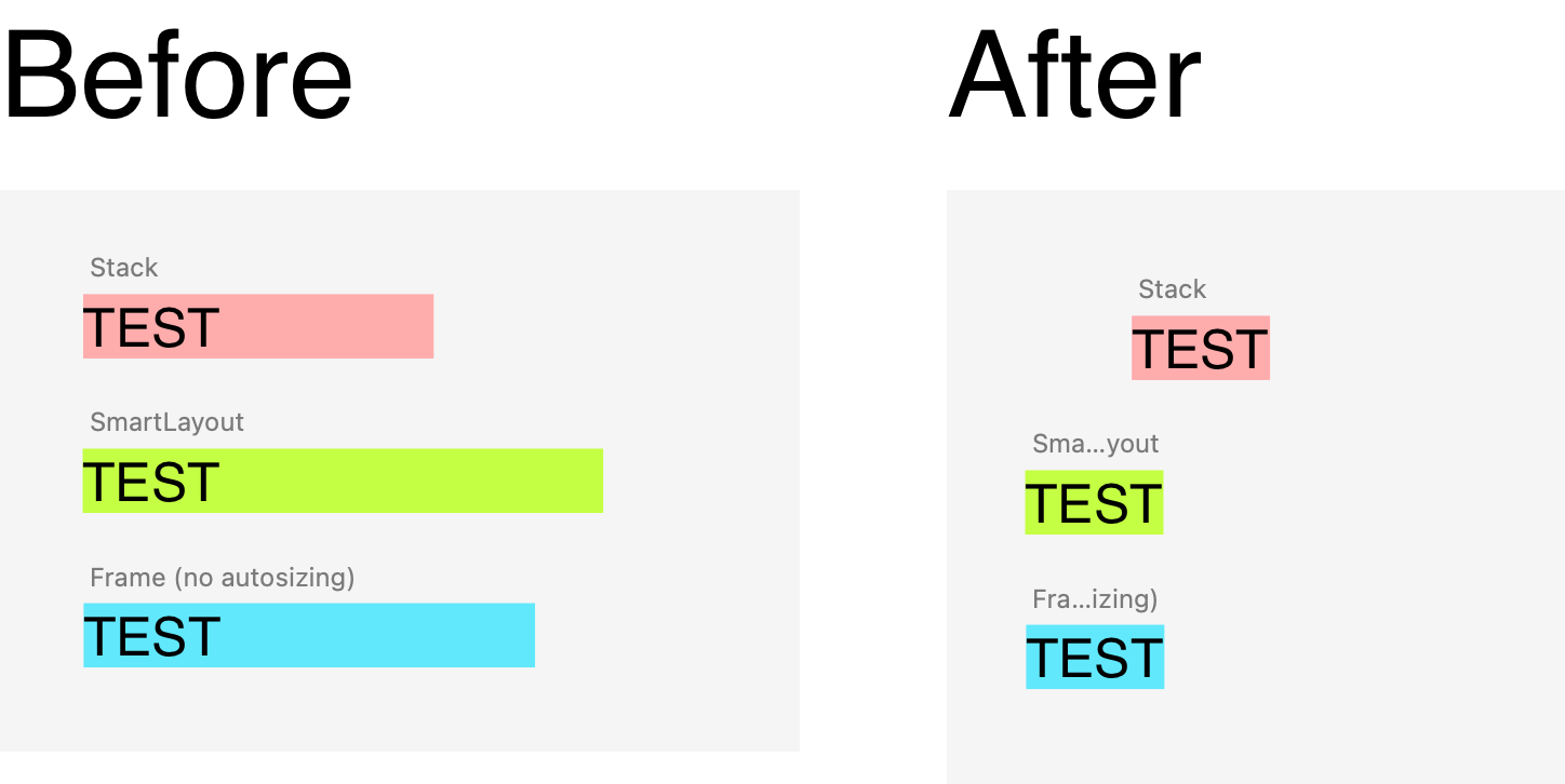 This works. But I never got the smart layout to work if I change the text content of a container (for example replace the text with a longer text and let the container grow, the behavior inside Sketch).