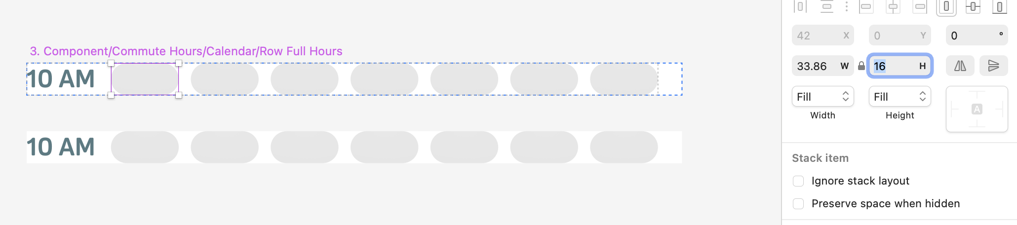 The squares collapse because when you set direct children of stacks with Fill, all will have the same size. In this case, the squares collapse to the height of the text layer because the text is not set to Fill height. Setting the layer’s height to Fill fixes the issue.