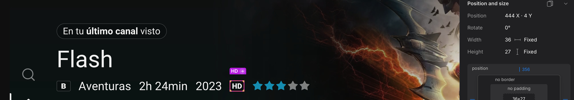 The original symbol containing all the content info metadata includes a UDH4K icon, with a larger width, that is later override with the HD icon, with a smaller width. Both icons are set as Graphics, not frames.